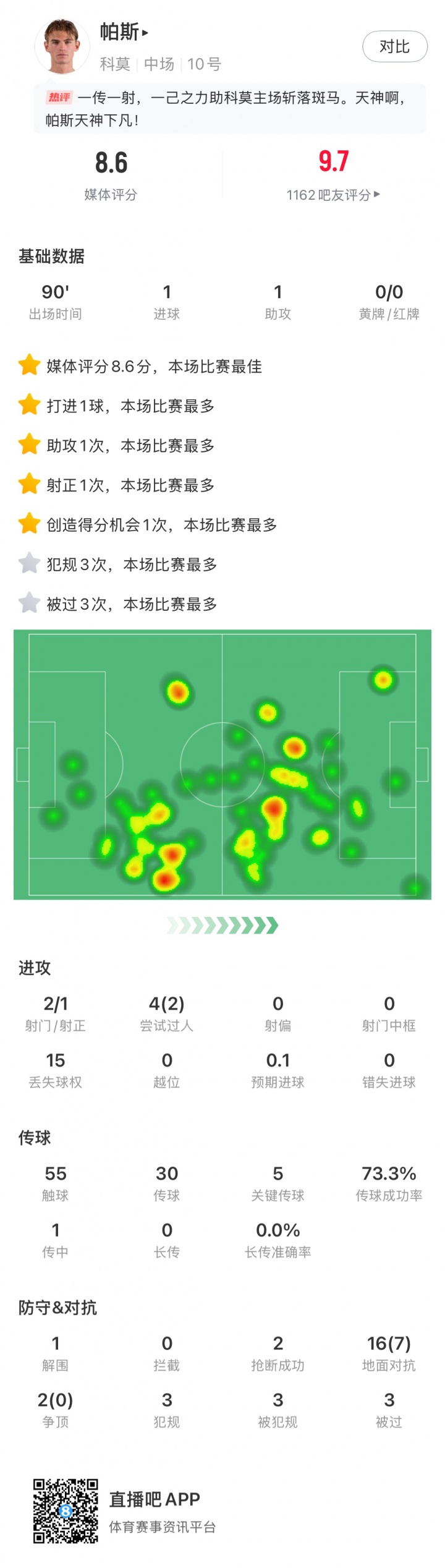科莫1-1热那亚,帕斯14次大地反抗到手5次