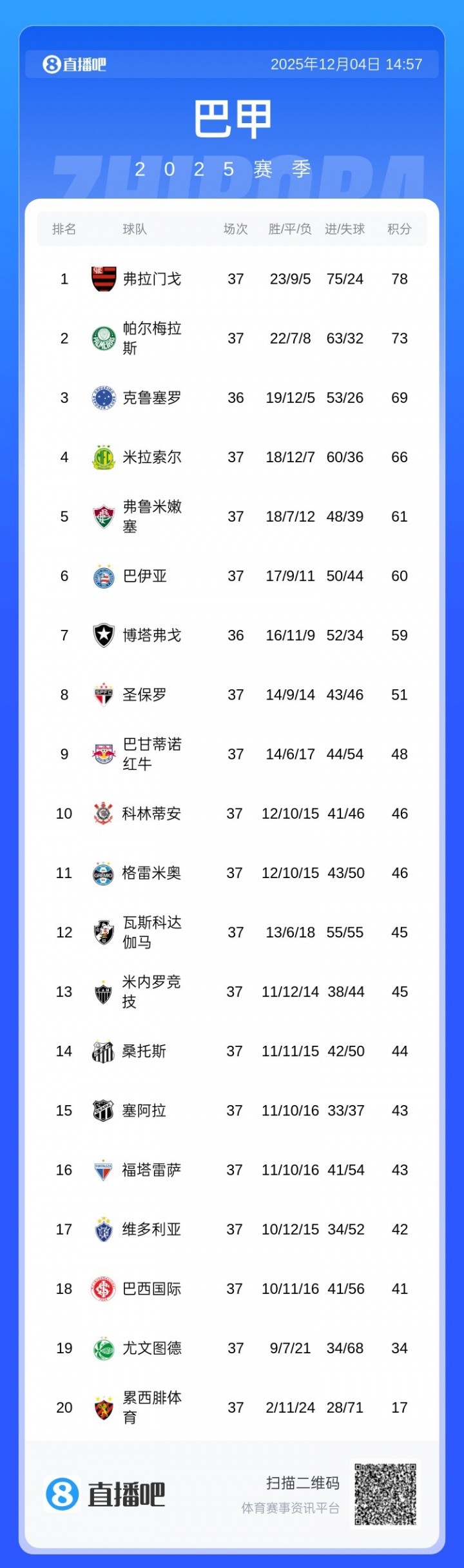 桑托斯现在排行巴甲第14位,逃离左迁区。