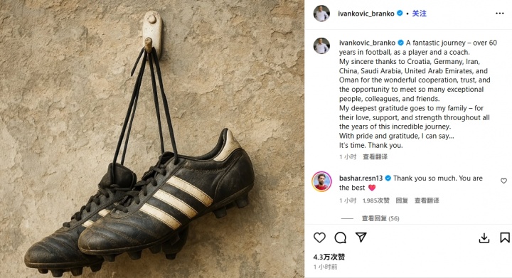 10月30日讯 71岁前国足主帅伊万科维奇在社媒发文,默契晓示退休,他暗意我方以球员和西宾身份飞驰足坛逾六十载,是技能该别足坛了。