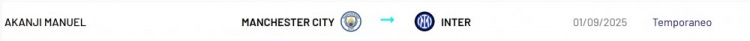 阿坎吉从曼城加友邦米,来去体式深刻为租出,据此前罗马诺报谈称,这笔来去为200万欧租出费+1500万欧买断费。