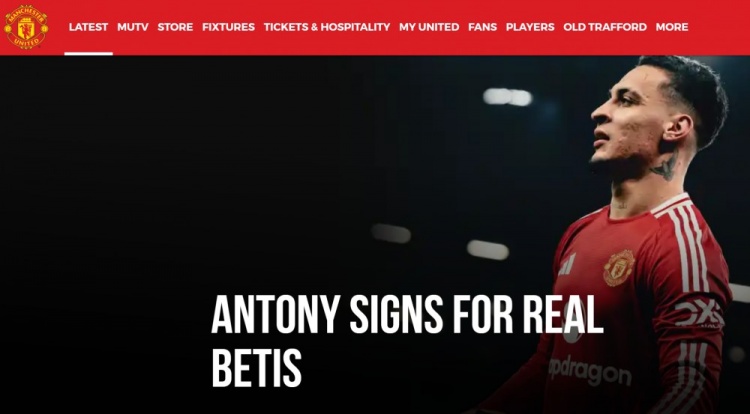 9月2日讯 巴西边锋安东尼如故官宣加盟贝蒂斯,曼联官网也发文奉上告别: