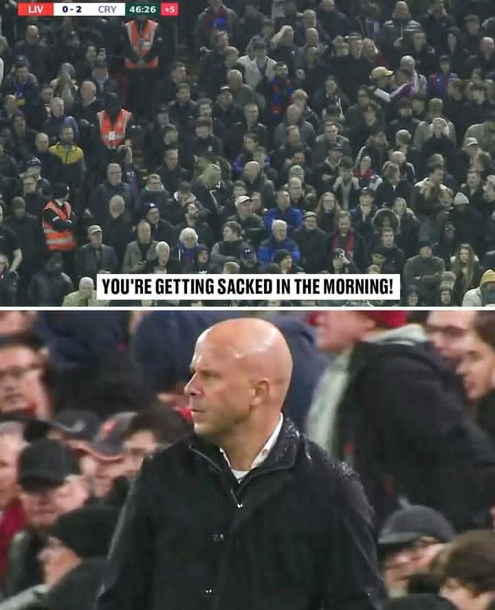 此役来到现场不雅战的部分水晶宫球迷嘲讽利物浦主帅斯洛特,他们对着斯洛特大叫“你未来早上就要被罢黜了”。