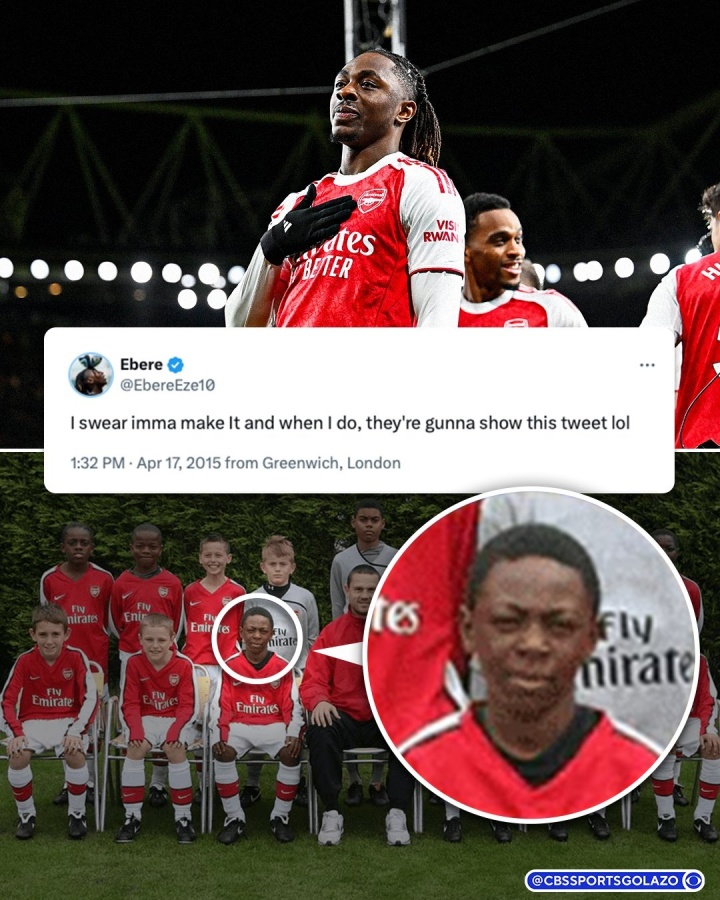 11月24日讯 阿森纳4-1完胜热刺,笑傲北伦敦德比,埃泽成为了本场比赛的帽子戏法强者。赛后,埃泽早年的一条社媒动态被各大媒体和球迷再度挖出。