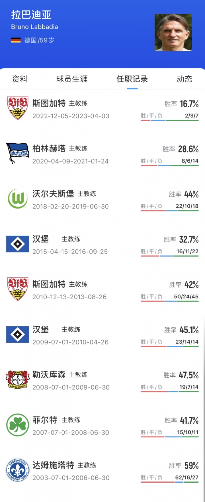坚挺到终末的黑马:Bruno Labbadia,布鲁诺·拉巴迪亚。也等于听说之中从未被曝光的阿谁隐私东谈主。不外,仍是不进击了。