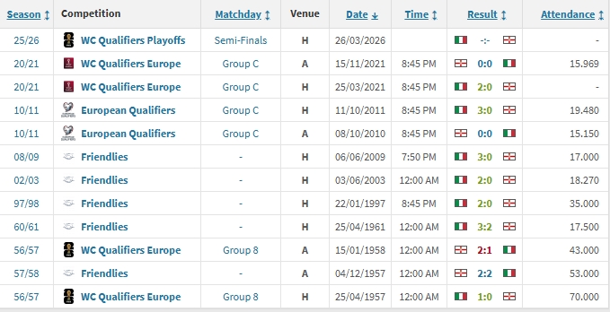 在 1958 年寰宇杯预选赛中被淘汰后,意大利在接下来的八场对阵北爱尔兰的比赛中保握不败(六胜两平),况兼在最近的七场比赛中保握零封。附加赛。